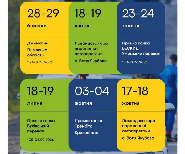 Іншим шляхом пішов Галицький автоклуб, який анонсував проведення в 2026 році аж шести змагань з різних дисциплін – але в жодному випадку не вказав їхній можливий статус. Іншими словами, на даний час ми можемо тільки гадати, чи будуть це окремі національні змагання, чи будуть вони об’єднані в якісь серії – Кубки, Трофеї чи навіть чемпіонати України.
